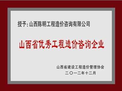 山西省優(yōu)秀工程造價咨詢企業(yè)