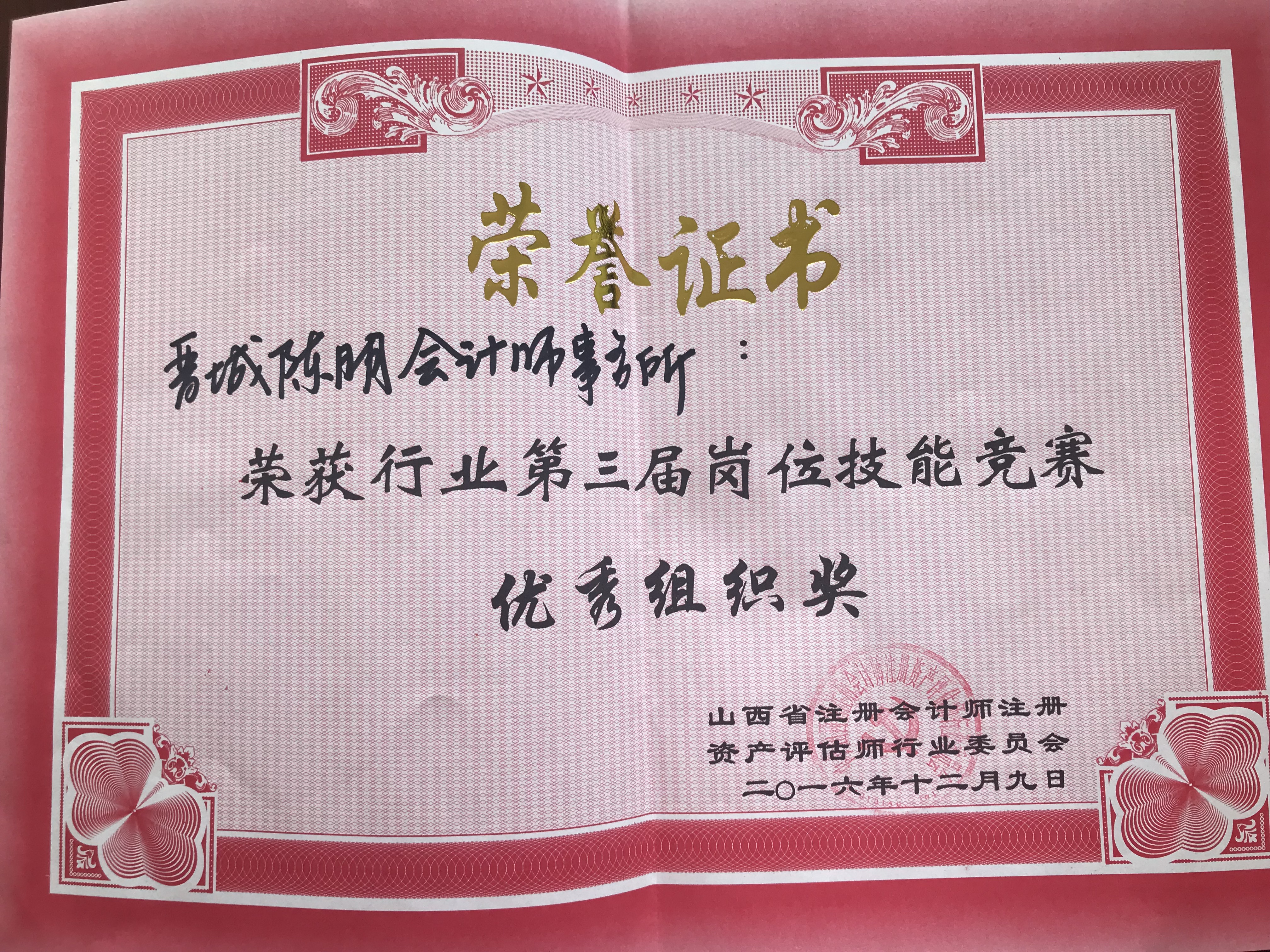 晉城陳明會計師事務(wù)所榮譽